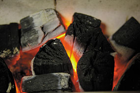 | 広義では炭団などの木炭を固めたものを指しますが、一般的には石炭からつくられる固体燃料のことをいいます。木炭に比べて着火が容易で火力も強く、火保ちもよいため、レジャー用などにさまざまな形状のものが普及していますが、着火時に強い匂いが発生し、不完全燃焼時の一酸化炭素発生量も多くなります。 |