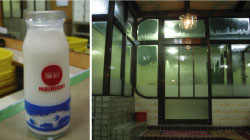 銭湯を始めて50年と、ベテランのご主人が焚いています。豊富に湧き出る井戸水を活かし、常に薪でわかした新しいお湯を供給しています。薬風呂、すわり風呂、ジェット風呂のほか、広いサウナがあります。甘くておいしい牛乳は90円。