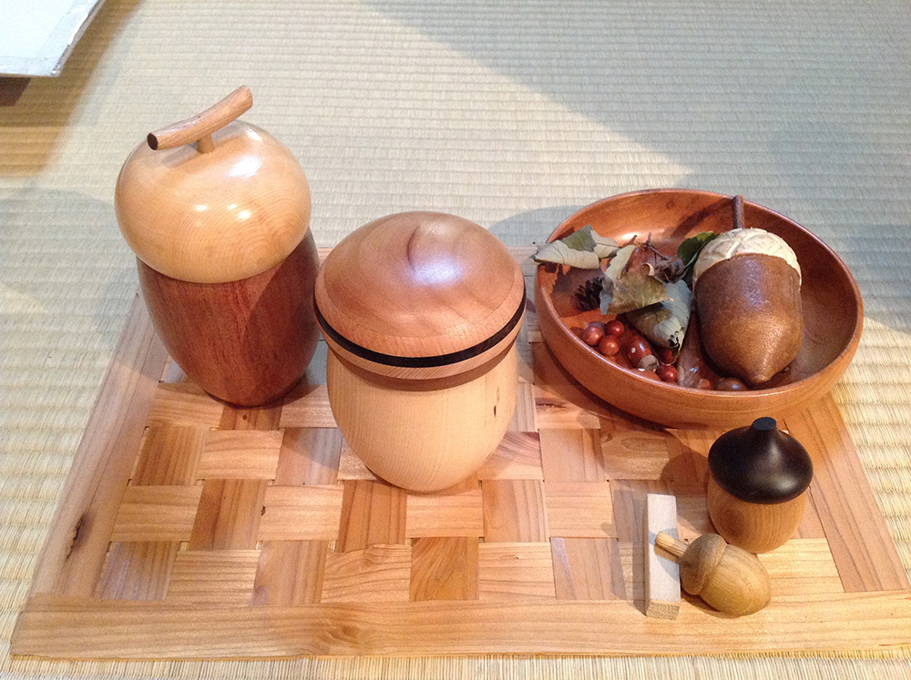 ●どんぐりカップ:ヒノキ・ラオスヒノキ・ブビンガ・トネリコ・ウォ-ルナットなど、撥水加工