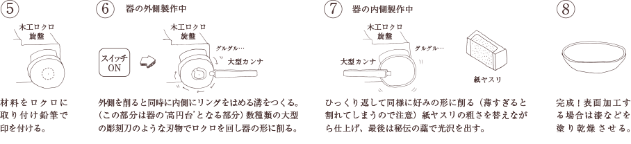 9世紀に近江国で惟喬親王が伝授したという木工技術。それが木地師の始まりです。また、木地師は木地物素材が豊富に取れる場所を転々としながら木地挽きをし、里の人や漆掻き、塗師と交易をして生計を立てていました。
