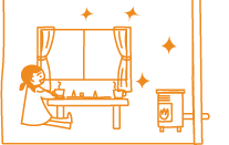 燃焼後の排気を屋外へ出すため部屋の空気が汚れません。給気にも外の空気を使うFF式タイプのストーブなら、部屋の換気が必要ありません。また排気もクリーンであることもペレットストーブの魅力です。