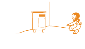 部屋のどの位置に置くかを決めましょう。基本的に設置場所の床補強や、壁の耐熱工事は不要です。給排気筒が正しく屋外へ出せる位置であり暖気が効率良く回る場所を考慮しながら販売店とご相談下さい。