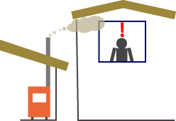 ストーブと排気筒の設置位置、排気筒の高さを再検討してみましょう。