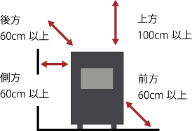 ただしこれは輻射熱型の温風暖房機についての法規のため、離隔距離が長く取られています。消防庁告示1号では「周囲の壁の表面温度が100度以上にならない距離又は引火しない距離を確保すれば離隔距離を短縮できる」となっており、機種ごとの離隔距離を計算しているメーカー(輸入元)もあります。実際には、壁から20~30センチ離して設置しているケースが多いです。