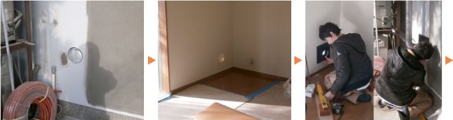 ■壁抜き工事:通常の場合はこの工法で行います。穴の大きさは径15センチ程度で、