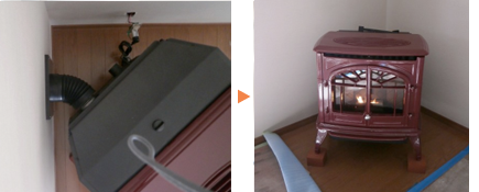 標準的な設置工事の所要時間は2~3時間程度です。手順は、給排気筒を屋外へ通す穴を開ける→給排気筒を取り付ける→ストーブを設置する→最後に燃焼テストをして完了です。新築設置の場合はストーブを置く位置が確定していれば、建物の工事時に壁に穴を開けておいていただく場合もあり設置工事時間の短縮になります。