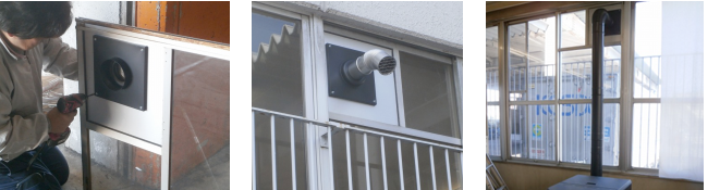 ■窓抜き工事:窓を専用窓に代えて給排気筒を通します。