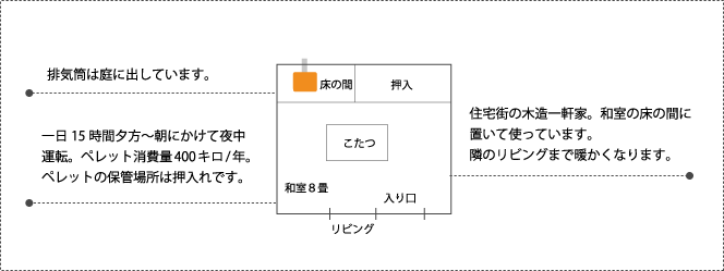 うちは夕方から翌朝にかけて寝ている間に運転していますので、もし排気ファンが止まってしまったらどうしよう、と不安になります。それに関しての安全装置はついているのかは、説明書を見る限りでは不明です。機械ものは老朽化していきますし、来シーズンは就寝中の運転はやめようかと検討しています。燃料の調達に関しても、10年後も重いペレットの袋を家に運びこむ作業をやれるかな、と思います。車が無く、燃料調達が困難で購入をあきらめたという人もいますよ。高齢世帯にとっては大きな課題になってきますね。安価な配達サービスを希望しています。